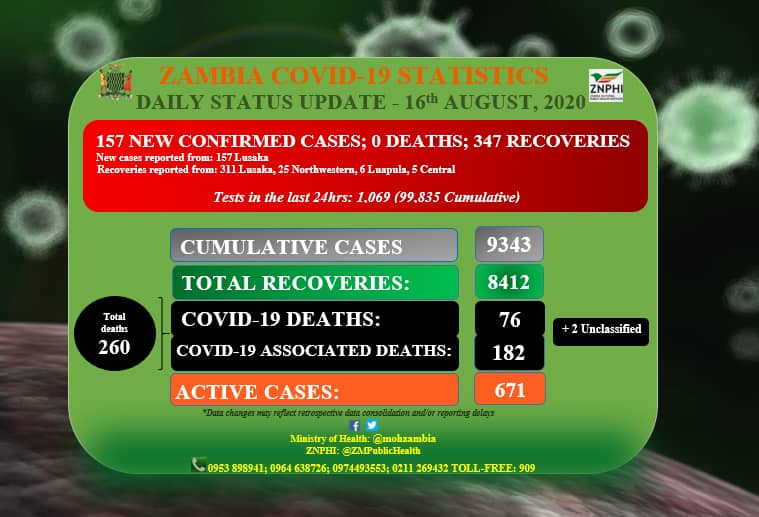 • Coronavirus - Zambia: COVID-19 Daily Status Update (16th August 2020)