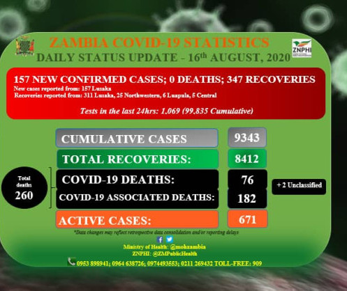 Coronavirus - Zambia: COVID-19 Daily Status Update (16th August 2020)