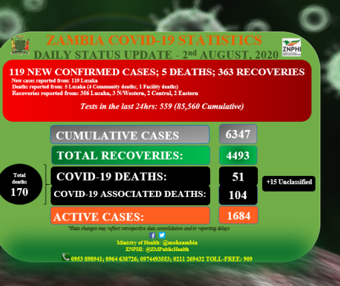 • Coronavirus - Zambia: COVID-19 Daily Status Update (2nd August 2020)