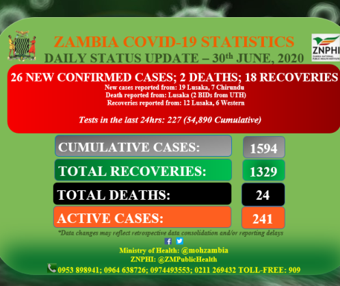 • Coronavirus - Zambia: COVID-19 Daily Status Update (30th June 2020)