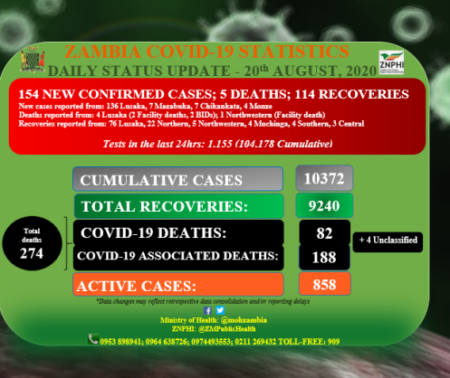 Coronavirus - Zambia: COVID-19 daily update (20 August 2020)