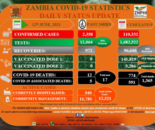 • Coronavirus - Zambia: COVID-19 Statistics Daily Status Update (12 June 2021)