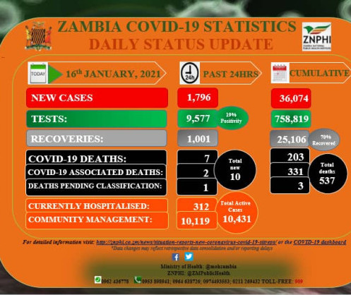 Coronavirus - Zambia: COVID-19 update (16 January 2021)