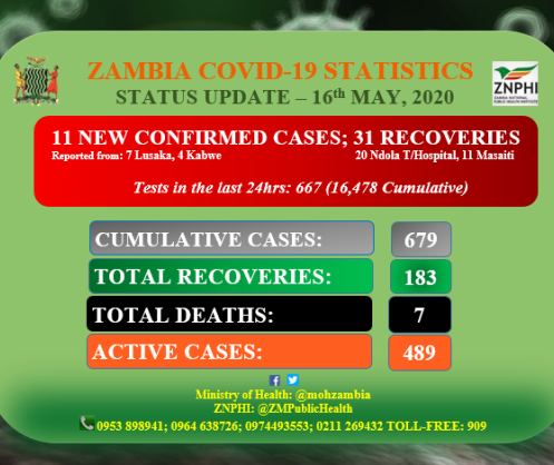 • Coronavirus - Zambia: COVID-19 update, 16 May 2020 - 2