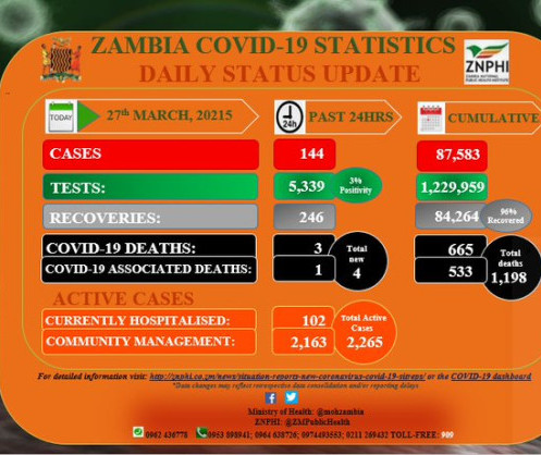 Coronavirus - Zambia: COVID-19 update (27 March 2021)