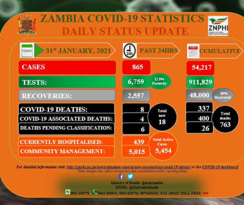 • Coronavirus - Zambia: COVID-19 update (31 January 2021)