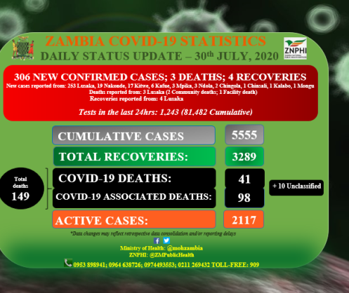 Coronavirus - Zambia: Daily COVID-19 update 30th July 2020