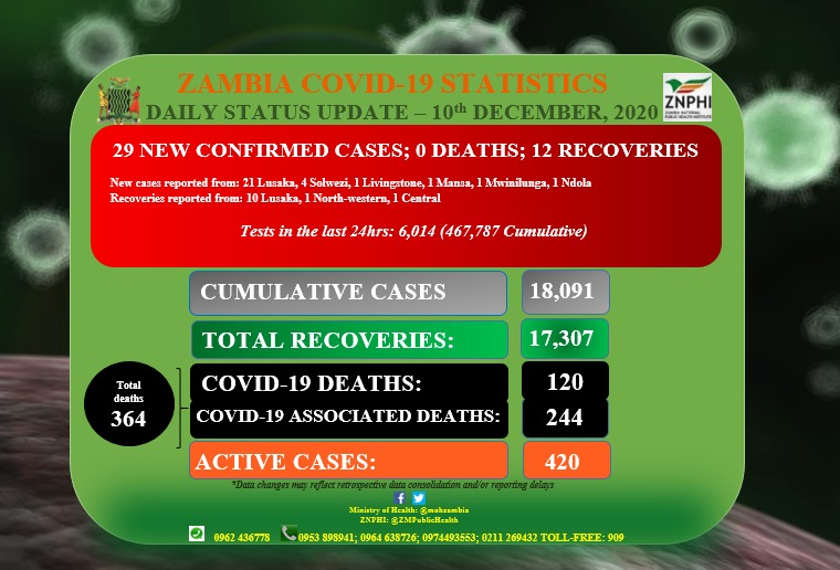 • Coronavirus - Zambia: Daily status update (10th December 2020)