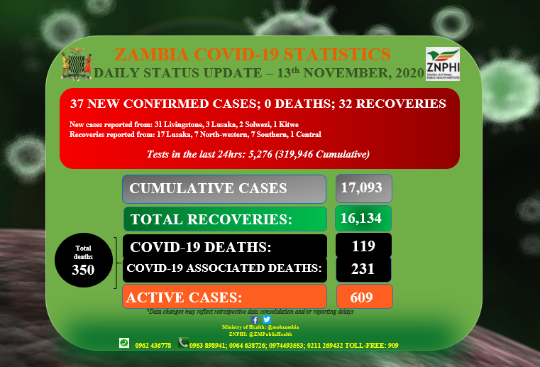 • Coronavirus - Zambia: Daily status update (13th November 2020)
