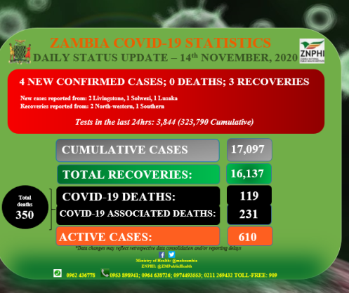 • Coronavirus - Zambia: Daily status update (14th November 2020)