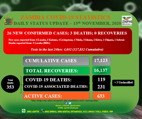 • Coronavirus - Zambia: Daily status update (15th November 2020)