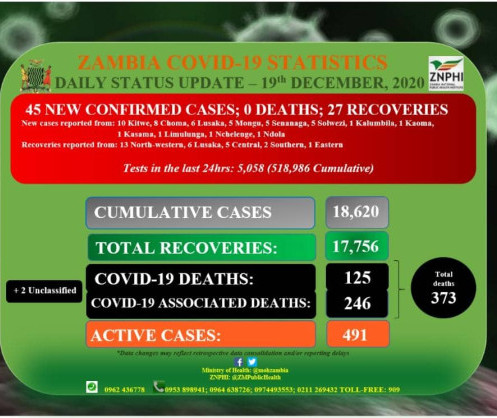 • Coronavirus - Zambia: Daily status update (19th December 2020)