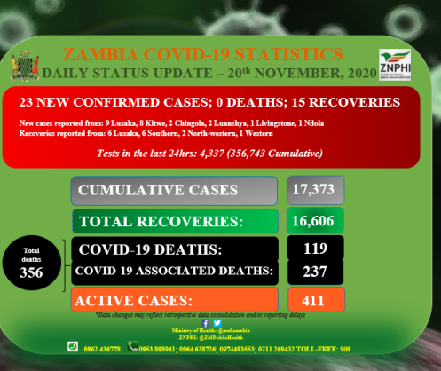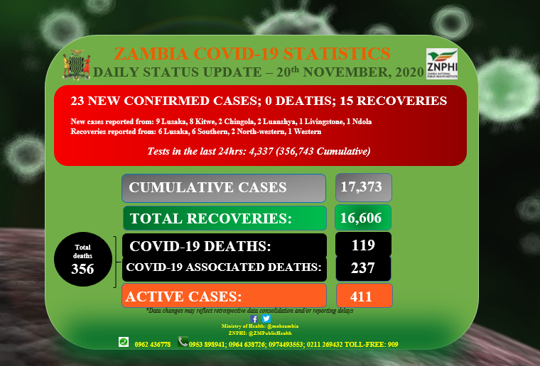 • Coronavirus - Zambia: Daily status update (20th November 2020)