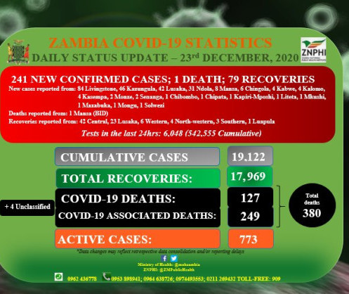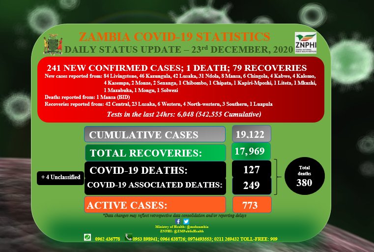 • Coronavirus - Zambia: Daily status update (23rd December 2020)