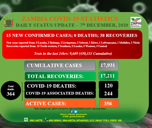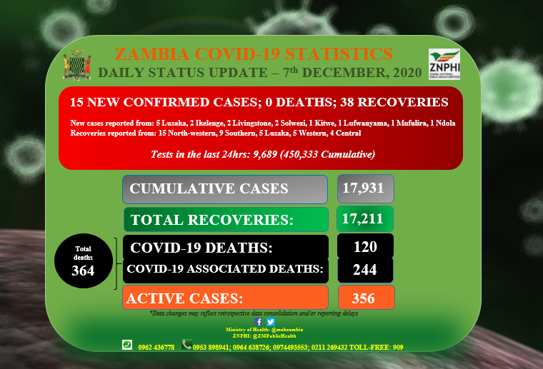 • Coronavirus - Zambia: Daily status update (7th December 2020)