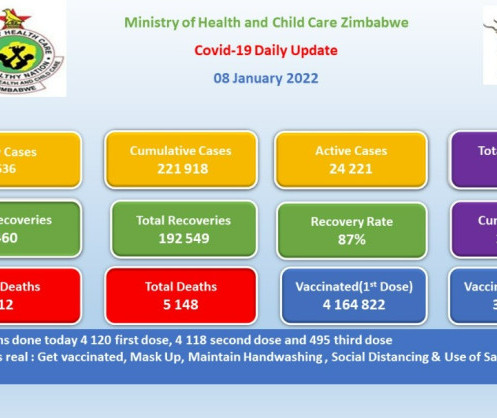 • Coronavirus - Zimbabwe: COVID-19 Statistics Daily Status Update (08 January 2022)
