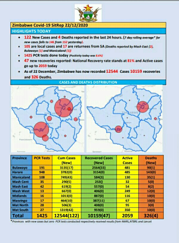 • Coronavirus - Zimbabwe: COVID-19 Update (22nd December 2020)