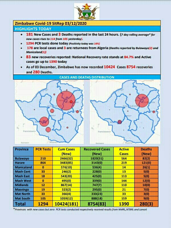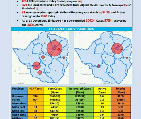• Coronavirus - Zimbabwe: COVID-19 Update (3rd December 2020)