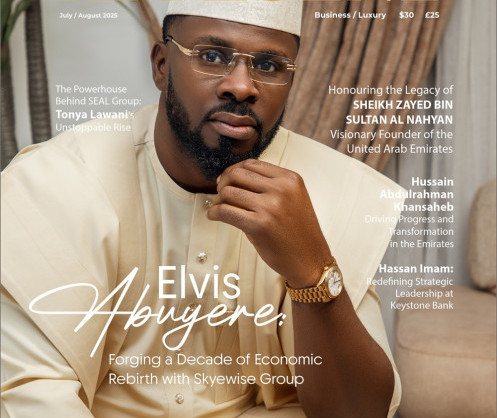 This commemorative edition features a powerful trio of cover stories — spotlighting the enduring legacy of Sheikh Zayed, the cultural diplomacy of UAE’s Minister of State, Noura bint Mohammed Al Kaabi, and the entrepreneurial excellence of Elvis Abuyere, CEO of Skywise Group, one of Africa’s most innovative investment firms.