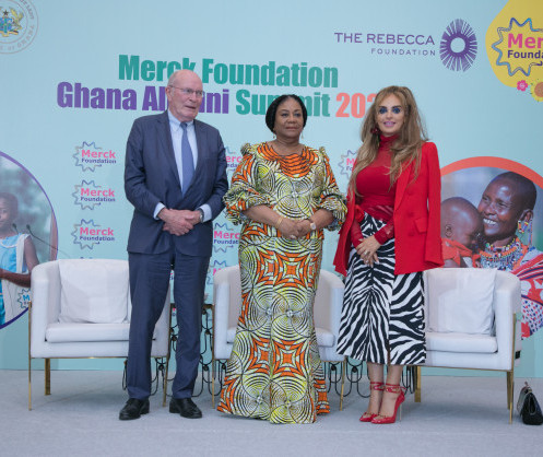 Fundação Merck, o braço filantrópico da Merck KGaA Alemanha realizou a Cúpula Anual e Cerimónia de Premiação da Fundação Merck Gana 2024 em Accra, Gana, presidida pela TPrimeira-Dama do Gana, S.E. Srª REBECCA AKUFO-ADDO, pelo Presidente do Conselho de Curadores da Fundação Merck, Prof. Dr. Frank Stangenberg-Haverkamp, e pela CEO da Fundação Merck, Senadora, Drª Rasha Kelej. Durante a Cimeira, eles mantiveram encontros e premiaram os Ex-alunos da Fundação Merck e os Vencedores do Prémio de Jornalismo Fundação Merck 2023 do Gana.