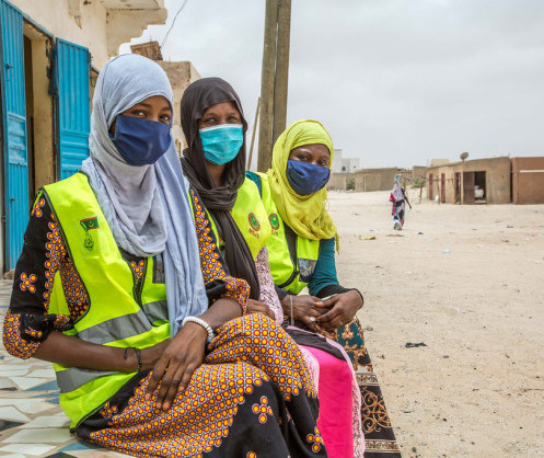 • © UNICEF/Raphael Pouget | De jeunes volontaires sensibilisent les gens au coronavirus en Mauritanie