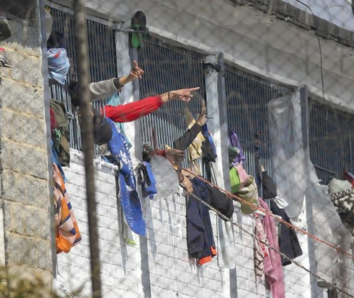 - Des détenus pointent de l'intérieur de la prison de La Modelo à Bogota, Colombie, dimanche 22 mars 2020. Vingt-trois détenus ont été tués et 83 ont été blessés lors de manifestations dans cette prison contre des conditions insalubres, le manque d'accès à l'eau, le surpeuplement et des mesures inadéquates pour les protéger de COVID-19. © 2020 AP Photo / Ivan Valencia