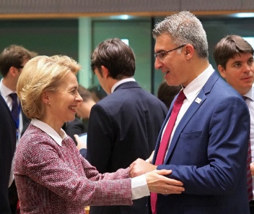 • Minister Carmelo Abela with Ursula Von Der Leyen, German Federal Minister of Defence, before the joint Council session for Foreign Affairs and Defence Ministers of the EU