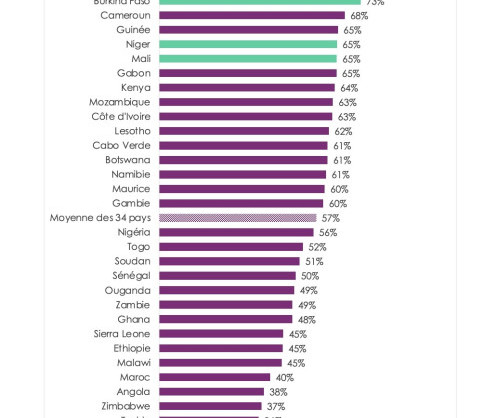 • Citizens’ positive ratings of ECOWAS influence in Burkina Faso (73%), Mali (65%), and Niger (65%) were well above the continental average.
