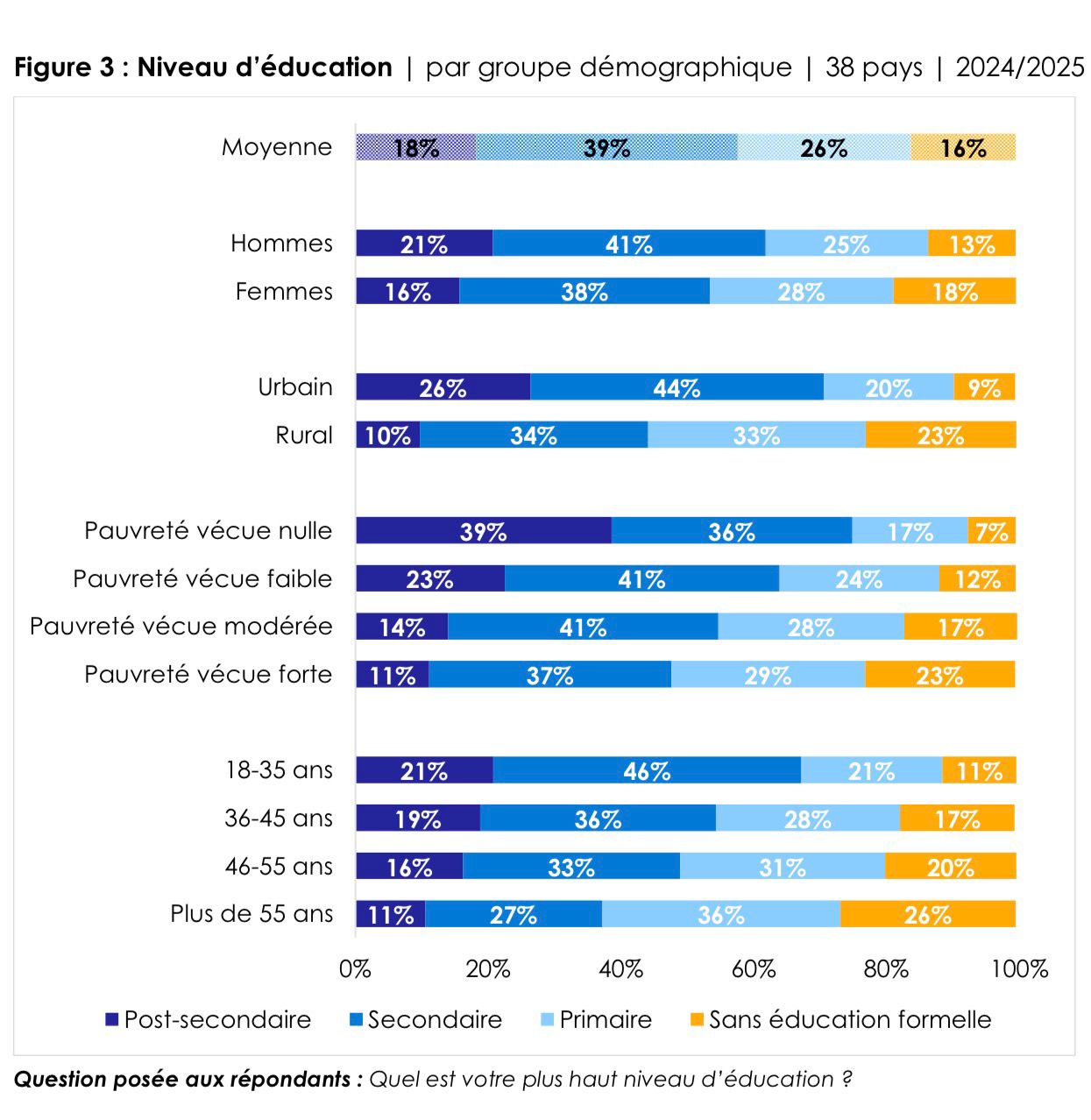 • Education climbs to third place on Africans’ list of priorities as governments get mixed marks on performance, new Afrobarometer Pan-Africa Profile reveals (2) (FR)