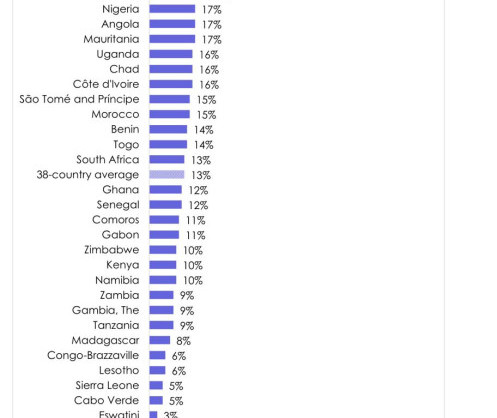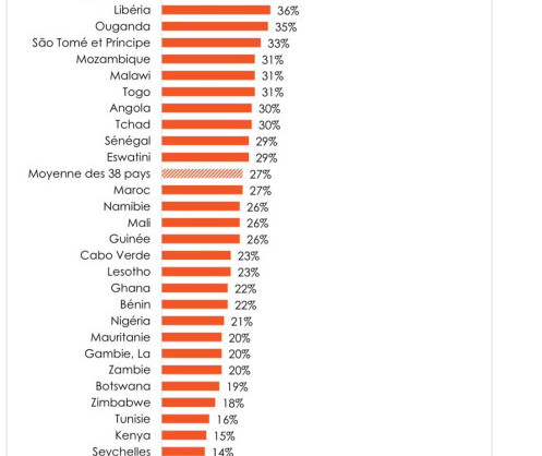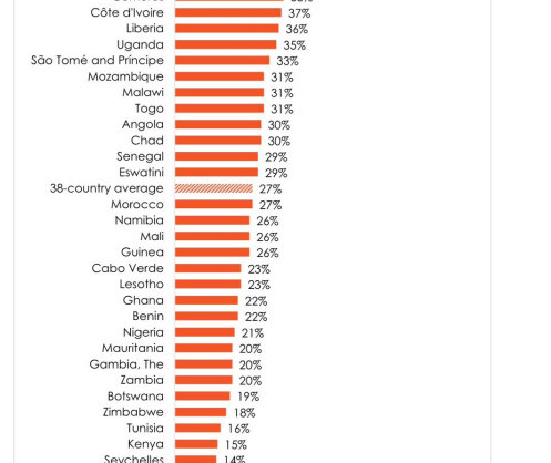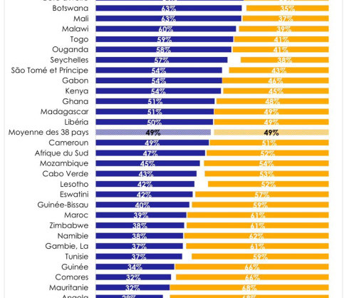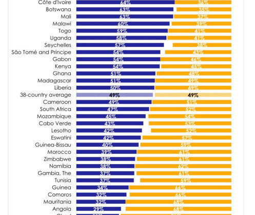 • Assessments are overwhelmingly favourable in some countries, led by Zambia (84%) and Tanzania (81%). By contrast, fewer than one in three citizens think their government is doing a good job on education in Angola (29%), Chad (28%), Nigeria (24%), and Congo-Brazzaville (22%).