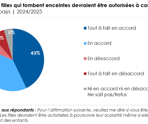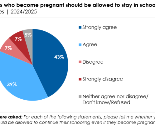 Analysis of the data also shows that Africans value the right to education for school-age mothers: Overwhelming majorities say that girls who become pregnant or have children should be allowed to continue their education.