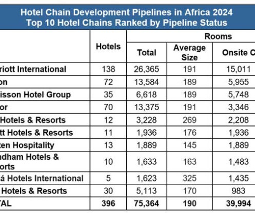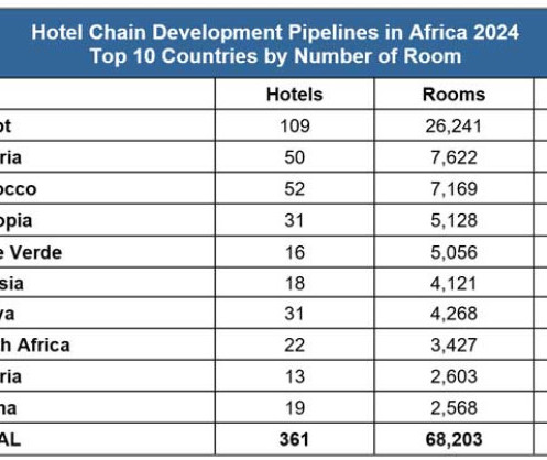 The survey, conducted by Lagos-based W Hospitality Group, in association with the Africa Hospitality Investment Forum (AHIF), is based on responses from 47 global and regional (African) hotel chains, reporting on a pipeline of hotel development activity totalling around 92,000 rooms in 524 hotels, in 41 of Africa’s 54 countries.