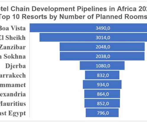 There has been an extremely strong increase in the number of resort projects in the pipeline, growing from 24% of the total in 2023 to 30% in 2024.  In addition, around half of the rooms in hotels and resorts that opened last year were in resorts. Both Boa Vista (Cape Verde) and Sharm El Sheikh (Egypt) score highly because of the very large average size of the resorts there. The largest hotel in the entire pipeline is a Rixos resort being planned in Sharm El Sheikh, with over 1,800 rooms.