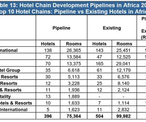 The Big 5 global chains – Marriott International, Hilton, Accor, Radisson Hotel Group and IHG Hotels & Resorts – account for 66% of hotels and 71% of rooms in the entire African pipeline.