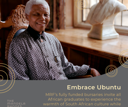 A bolsa de estudos da Fundação Mandela Rhodes (www.MandelaRhodes.org) está no seu 21.º ano, com as inscrições para o ano académico de 2025 a abrirem em 14 de Março de 2024. As coortes de Bolseiros Mandela Rhodes consistem num grupo diverso de licenciados de quase 40 países do continente africano. O programa cresceu ao longo dos anos e, até ao momento, quase 700 alunos receberam bolsas de estudo da Fundação.