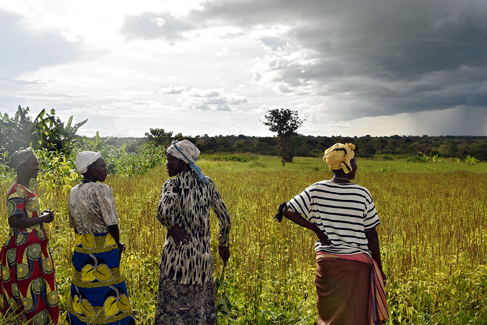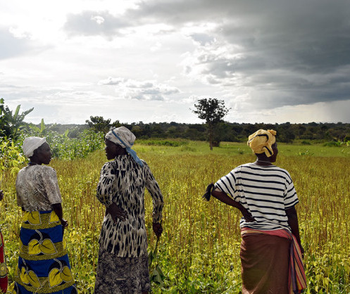 • In 2019, women farmers in northern Uganda stand in a chia field they collectively harvest, aided with seeds from a UN Women project. Uganda's 2021 Succession Amendment Bill addresses gender inequality in inheritance land rights and laws will now recognize women and girls as entitled to land and property. Photo: UN Women/Eva Sibanda