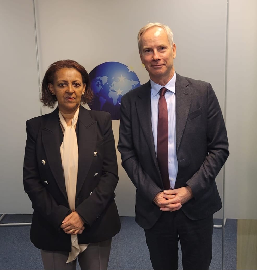 H.E. Hirut Zemene, Ambassador Extraordinary & Plenipotentiary of the Federal Democratic Republic of Ethiopia to the Benelux countries and EU institutions, met the newly appointed European Union Special Representative for Human Rights, H.E. Olof SKOOG at his office on March 13, 2024. Ambassador Hirut congratulated the special representative on his new assignment.