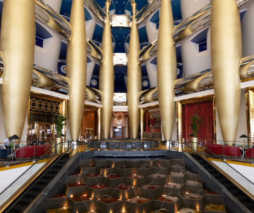 The interiors of Burj Al Arab Jumeirah are gilded in 24-carat gold, with approximately 2,000sqm of 24-carat gold leaf used to embellish the hotel’s opulent interiors