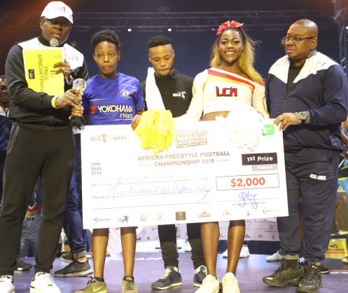 • Titi Kone, da Costa do Marfim, vence o Campeonato Africano de Futebol Freestyle de 2019. O Sr. Valentine Ozigbo, Presidente da Feet 'N' Tricks International apresenta o Campeão de 2019 em setembro de 2019 em Lagos, Nigéria