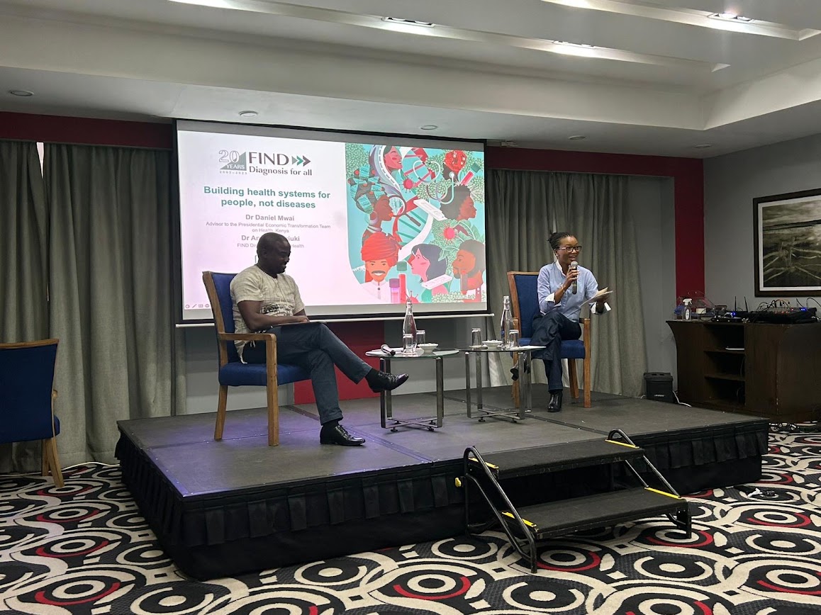 • Dr Angela Muriuki, FIND Director, Women’s Health, discussed strategies to build health systems for people, not diseases, with Dr Daniel Mwai, Advisor to the Presidential Economic Transformation Team on Health, Kenya, during the Diagnostics Dinner event
