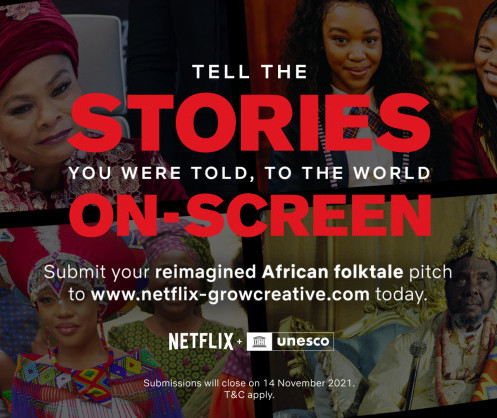 A Netflix (www.Netflix.com) e a UNESCO associaram-se para iniciar uma inovadora competição de curtas-metragens sobre "Contos populares africanos reinventados" na África Subsariana (https://bit.ly/3p0LtaD). Os vencedores da competição receberão formação e orientação de profissionais da indústria e um orçamento de 75 mil dólares americanos para criar curtas-metragens que irão estrear na Netflix em 2022 como "Antologia de contos populares africanos".