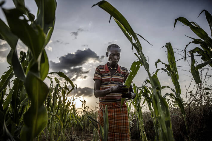 • Farmer Lochom Ekiru assesses crop damage caused by Desert Locusts in Turkana County, Kenya