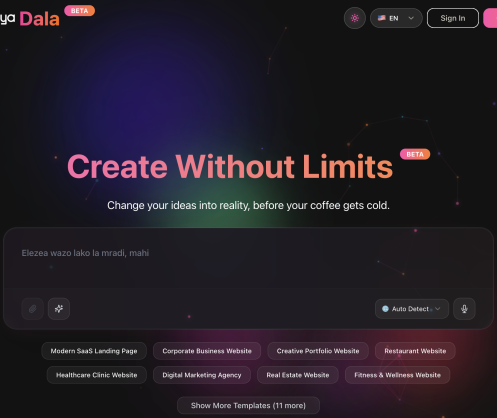 • Multilingual, Natural Language Interface: Users can describe their app idea in plain Amharic, Swahili, Hausa, Arabic, Lingala, Zulu, English, French etc. Gebeya Dala’s AI interprets the command and generates the full-stack code, eliminating the traditional complexity of coding.