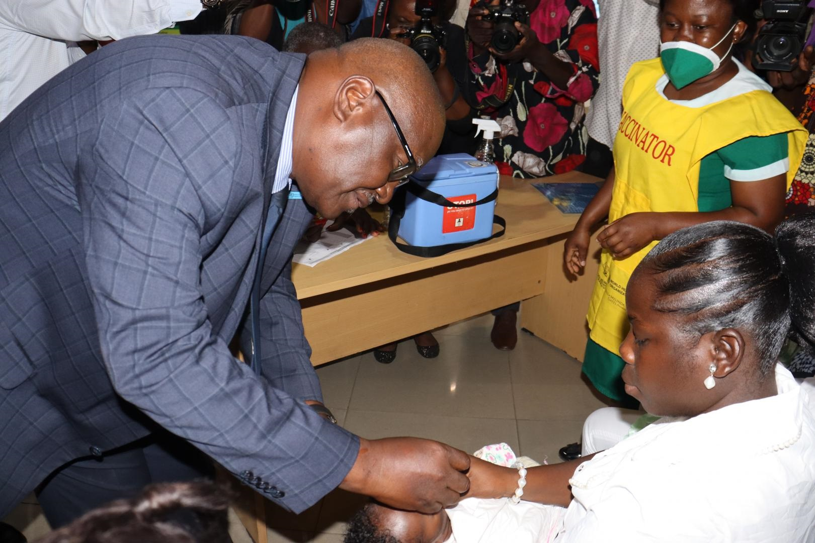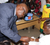 • WHO Representative Ghana Dr. Francis Kasolo, administering polio vaccine to a child to kick start the immunization campaign