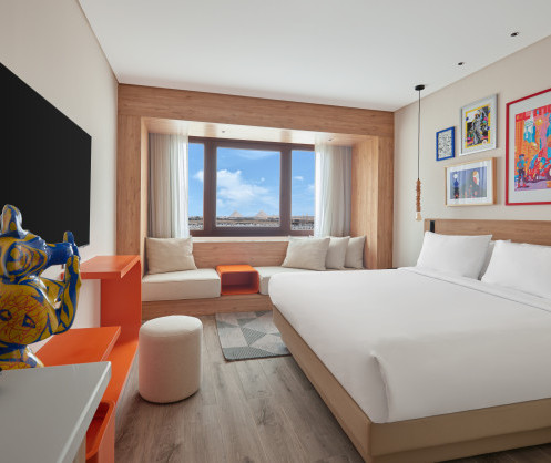 • حياة سنتريك كايرو ويست فندق نابض بالإبداع الفني افتُتح في عام 2024، ويقع في موقع استراتيجي على مقربة من أهرامات الجيزة والمتحف المصري الكبير.