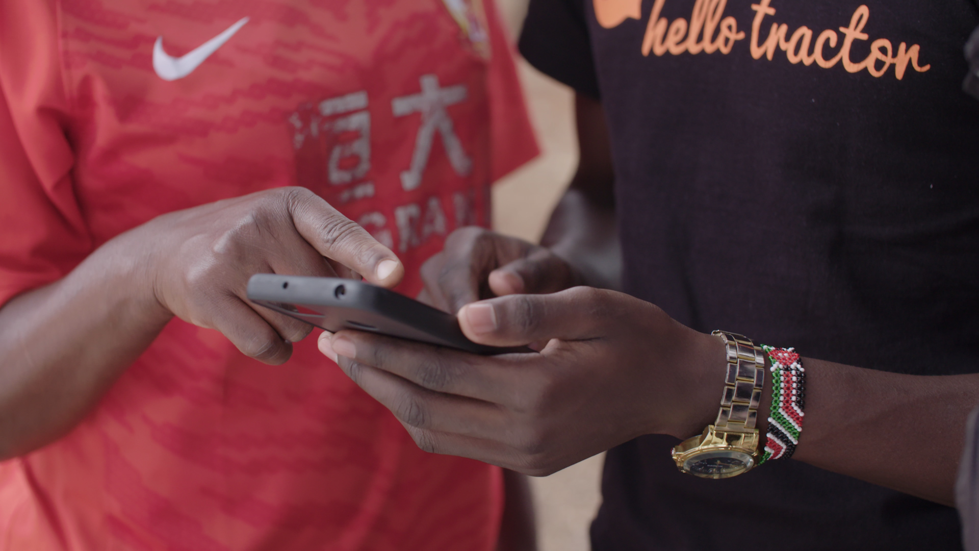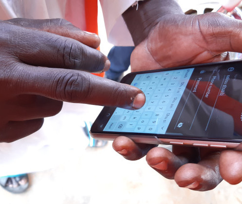 • Jehiel montrant l'application Hello Tractor
