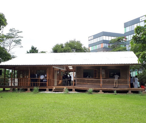 A l’occasion de la célébration des journées mondiales de l’habitat et de l’architecture, lundi 7 octobre, le Premier ministre Julien Nkoghe Bekale, accompagné de plusieurs membres de son gouvernement dont le ministre en charge de l’habitat Ernest Mpouho Epigat, a inauguré la « Villa Gaboma » à l’Institut français du Gabon, en présence de l’ambassadeur de France, Philippe Autié, du coordonnateur résident du système des Nations Unies au Gabon, Stephen Jackson, et du président de l’ordre gabonais des architectes, Jean Joel Mebaley. La « Villa Gaboma » avait reçu le premier prix, prix de l’Ambassade de France, du concours de la maison 100% gabonaise, organisé conjointement par l’Ambassade de France, l’ordre gabonais des architectes et le ministère gabonais en charge de l’artisanat. L’architecte de ce projet, Lucas Oliveira, ainsi que les artisans gabonais ayant œuvré à sa construction ont été mis à l’honneur. Le succès populaire de cette journée souligne l’intérêt de nombreux Gabonais pour les questions de coopération dans les domaines de l’habitat et de l’artisanat.
