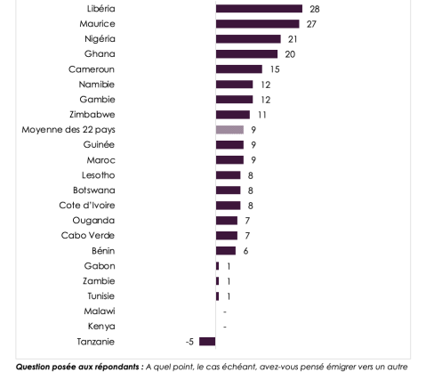 • Tanzania is the only surveyed country where the proportion of citizens giving at least some thought to emigration has decreased (-5 points).