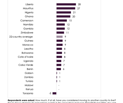 Almost half of Africans have considered emigrating, a significant increase compared to the proportion recorded in 2016/2018, new Afrobarometer (www.Afrobarometer.org) findings from 24 African countries show.