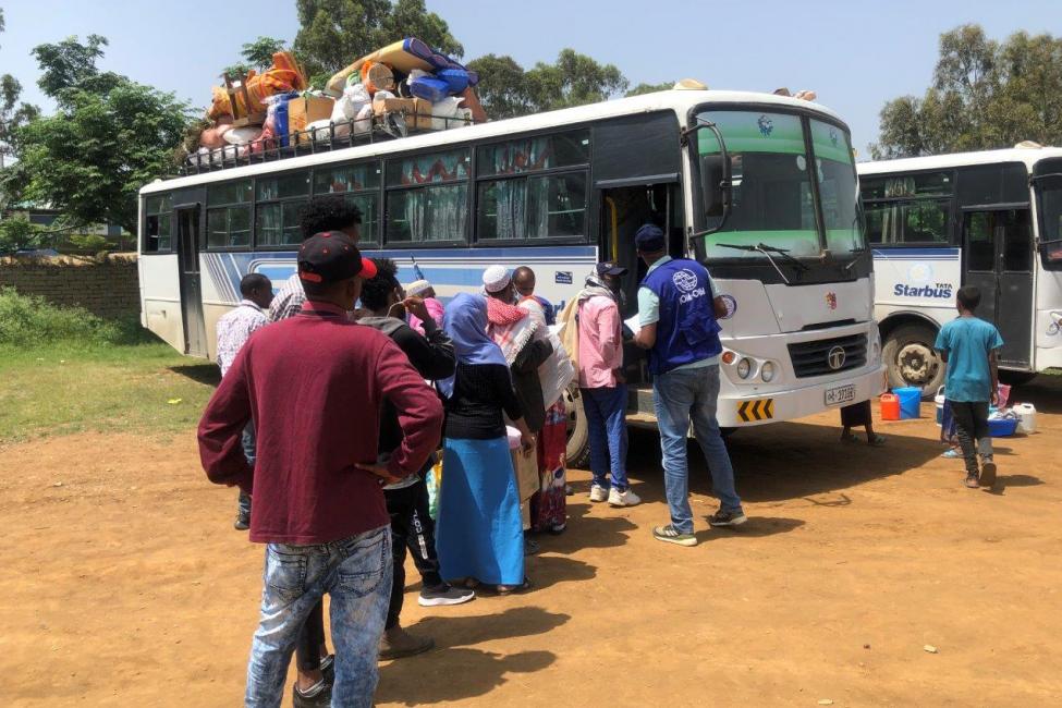 After months in makeshift sites, with little food or water, thousands of Internally Displaced Persons (IDPs) affected by the conflict in Northern Ethiopia are being voluntarily relocated to new shelters by the International Organization for Migration (IOM).